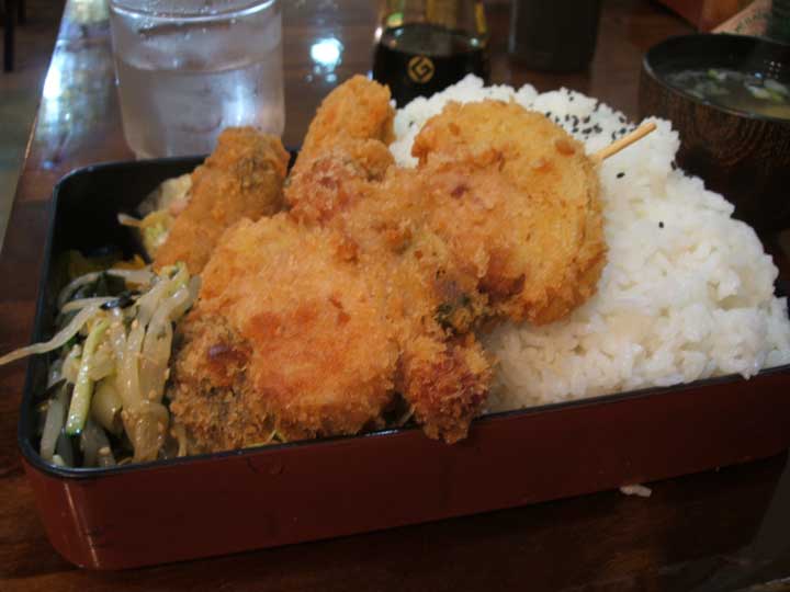 ▼本日の日替わり「串かつ弁当」960円(普通盛り)。これは大盛り。